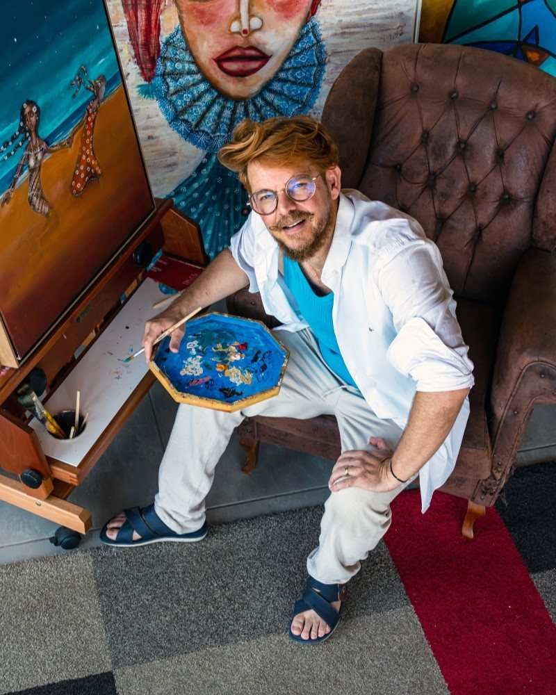 contra a exclusão, o preconceito, a discriminação e a exploração cultural e intelectual. Formado em filosofia com especialização em filosofia da arte, teatro, gestão educacional e psicanálise, intitula-se como expressionista contemporâneo e suas obras se desdobram em poéticas (conectadas a literatura), figurativas e sacras. Realizou exposições no Brasil e no exterior. Se dedica a arte há mais de 25 anos. Abraçou a pintura como modo de expressão na infância, por volta dos sete anos de idade. É ex-padre da Ordem dos Jesuítas e por anos atuou como diretor de comunicação da ANEAS – Rede Jesuíta de Educação e na direção do Colégio São Luís, em São Paulo.