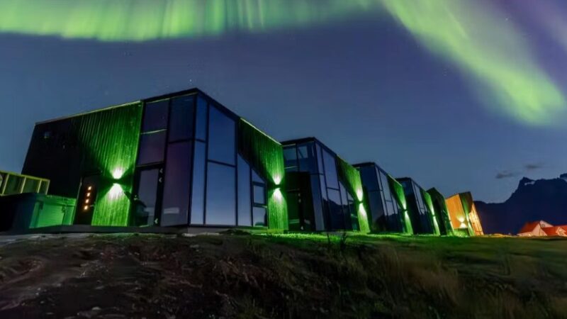 Além disso, o hotel de luxo na Noruega em Rotsund oferece acesso interno para a recepção e o restaurante, que serve um menu em três etapas com produtos locais. No momento da aurora boreal, os hóspedes são avisados por um alarme e as luzes do hotel são apagadas para proporcionar a melhor experiência de observação da aurora boreal.