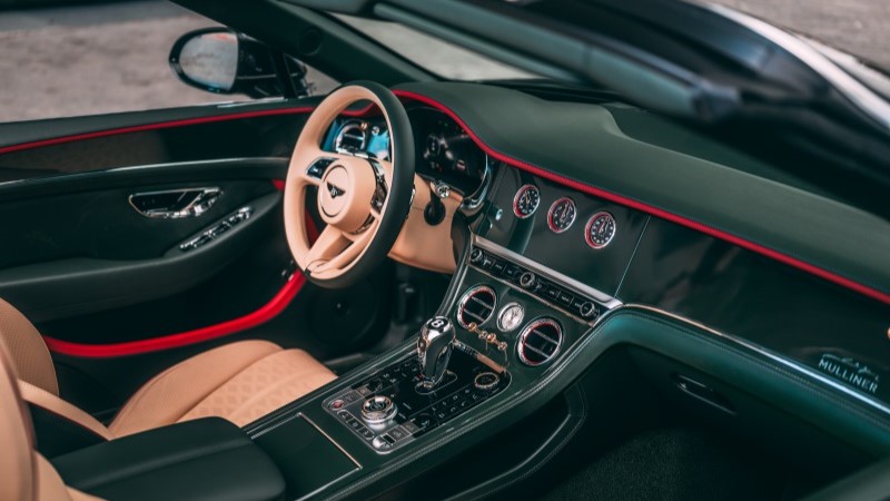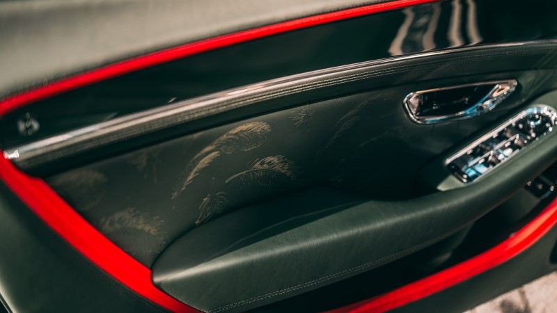 A faixa vermelha do Capitão Frans Banninck Cocq, figura central da pintura, é reproduzida nos detalhes em couro vermelho Hotspur no interior, enquanto a cor do casaco do tenente inspirou a escolha da Mulliner pelo couro principal na tonalidade Magnólia, que contrasta elegantemente com o couro secundário verde Cumbrian.