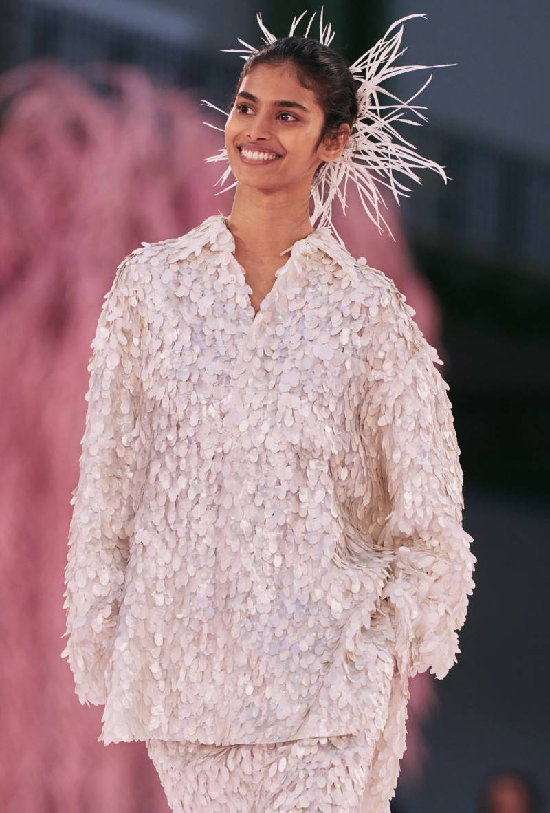 O instinto de Matthieu Blazy para sua primeira coleção foi fazer como Coco Chanel fazia outrora: “roupas para as mulheres irem trabalhar, irem ao teatro, ao cinema, qualquer coisa”. Por isso, sua alta costura pareceu mais relacionável do que muito do que vimos nas passarelas da semana, tornando o trabalho artesanal impressionante ainda mais exquisito.