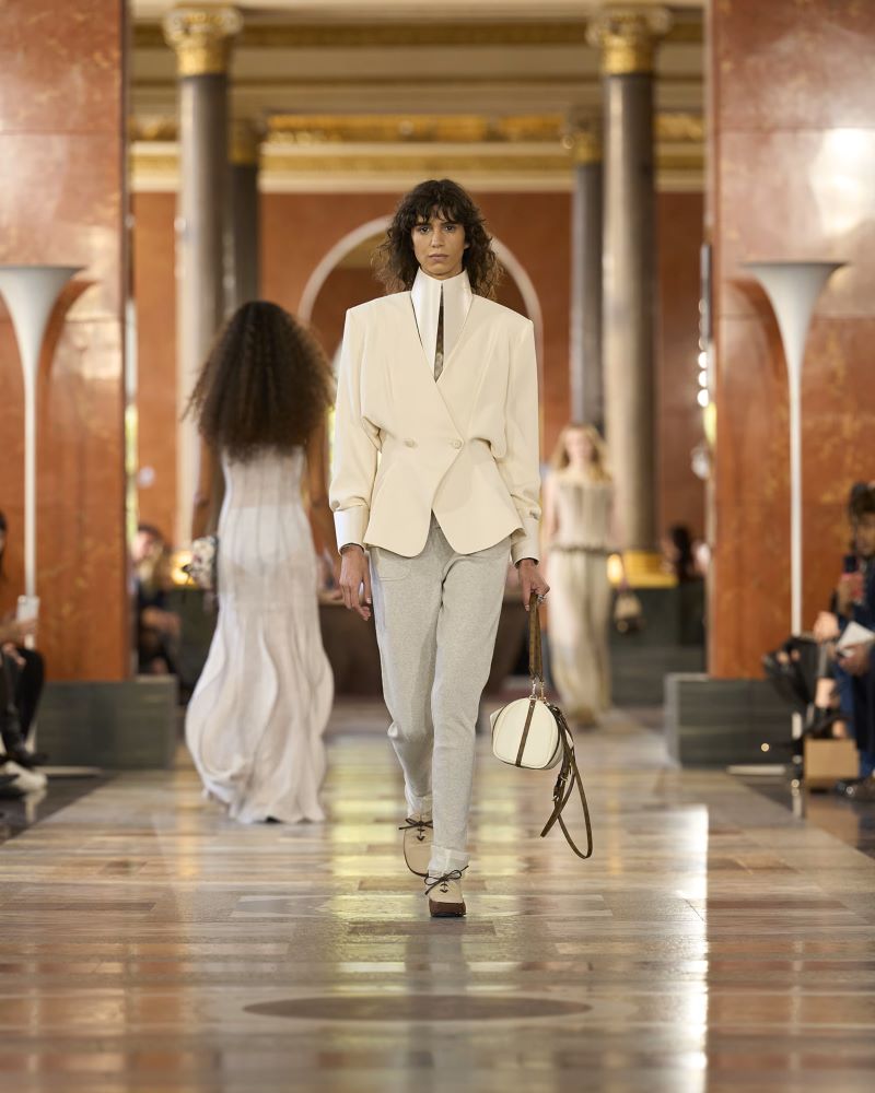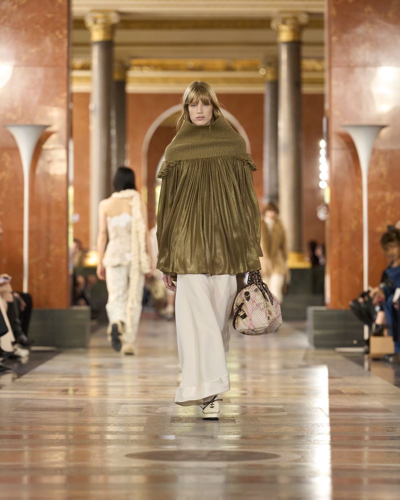 Elas eram o contraponto perfeito: mesmo no Louvre, Ghesquière fazia o ato de ficar em casa – ou melhor, de habitar o próprio ser – parecer o gesto mais chique de todos, uma coleção que não impõe, mas convida a dançar nas nuvens de um guarda-roupa sem fronteiras, onde o eu interior desfila eterno, radiante e livre.