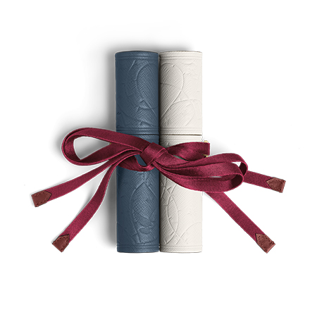 O estojo cilíndrico para duas canetas, confeccionado em couro nas mesmas tonalidades, é apresentado em conjunto e pode ser unido por uma fita de cetim. Abotoaduras prateadas em formato de rosa e a tinta de edição especial Verona Red, inspirada na cor da paixão e do destino, completam a experiência.