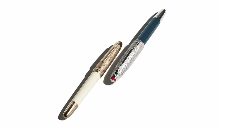 Já a Meisterstück Romeo Doué LeGrand Edition combina uma tampa revestida de platina, decorada com padrão de folhas, a um corpo em resina preciosa verde-azulada. O contraste entre luz e sombra simboliza o dinamismo e a profundidade emocional do personagem. A pena em ouro maciço Au 750 revestida de ródio completa o design.