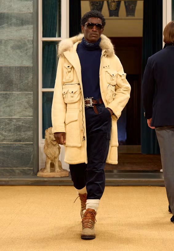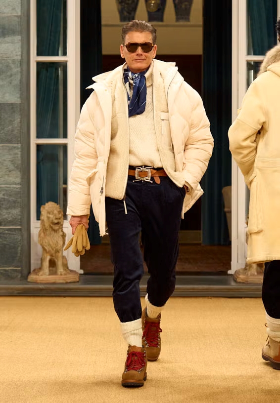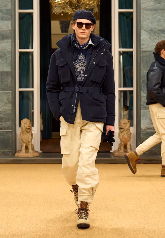 A apresentação foi aberta com a coleção Polo Ralph Lauren Outono 2026, na qual ícones do legado da marca e o clássico workwear americano foram reinterpretados sob uma perspectiva contemporânea.