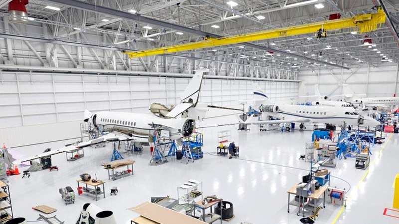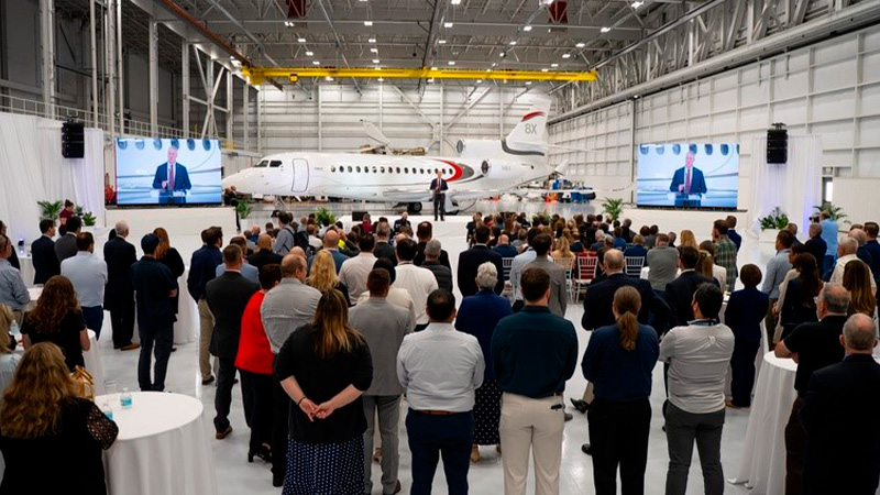 Destinado a atender clientes na América do Norte, América do Sul e outras regiões, o complexo de 23.000 m² pode acomodar todos os modelos Falcon atuais (incluindo o Falcon 10X em desenvolvimento, de alcance ultralongo, o maior jato executivo construído para esse fim).