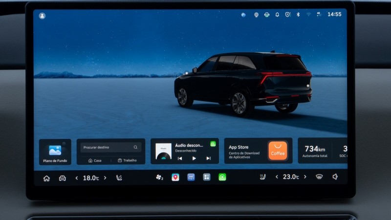 O SUV também traz Thermal Box inteligente, com função de aquecimento e refrigeração entre -6°C e 50°C, além de carregador sem fio de 50W, múltiplas entradas USB-A e USB-C e ar-condicionado digital de três zonas com controle sensível ao toque.