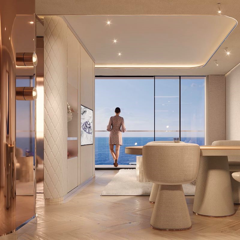 A previsão é de temporada inaugural em 2029, com rotas sazonais em águas quentes (Mediterrâneo no verão, Caribe ou Índico no inverno).