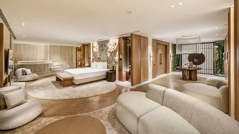 Com aproximadamente 1.700 m² de área total, a suíte foi concebida como uma residência privada dentro do hotel, combinando escala monumental, privacidade absoluta e serviços altamente personalizados.