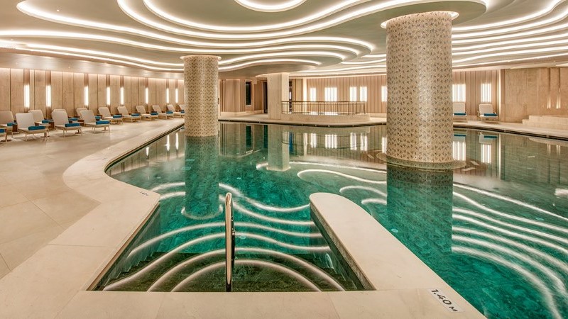 Indoor Wellbeing Pool no Regnum The Crown é um espaço aquático interno projetado para relaxamento e equilíbrio, integrado à área de bem-estar do resort.
