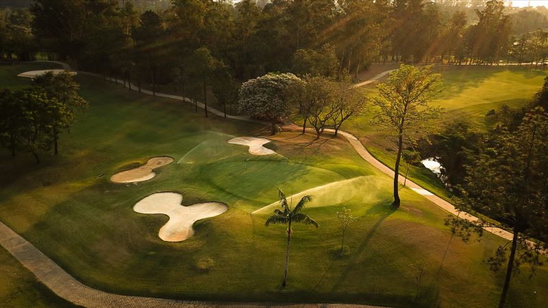 O campo de 18 buracos, com opções de 9 ou até 27 buracos em configurações, se estende por 650 mil m² de terreno ondulado, oferecendo um percurso desafiador e visualmente deslumbrante. Com par 72 e cerca de 6.500 metros do tee profissional, o layout explora colinas suaves, lagos cristalinos, bunkers bem posicionados e greens rápidos e ondulados que exigem leitura precisa do terreno.