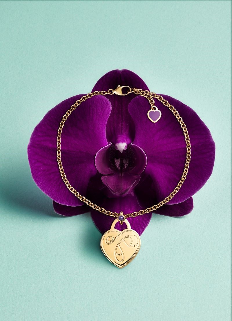 A parceria dá vida a uma edição especial da coleção Return to Tiffany®, reinterpretada em ouro amarelo 18k e adornada por detalhes em esmalte roxo, cor que simboliza a identidade transformadora da Oportunidade do Bem. A coleção inclui três modelos: um colar de corrente ajustável, uma pulseira de corrente e uma pulseira com cordão roxo.